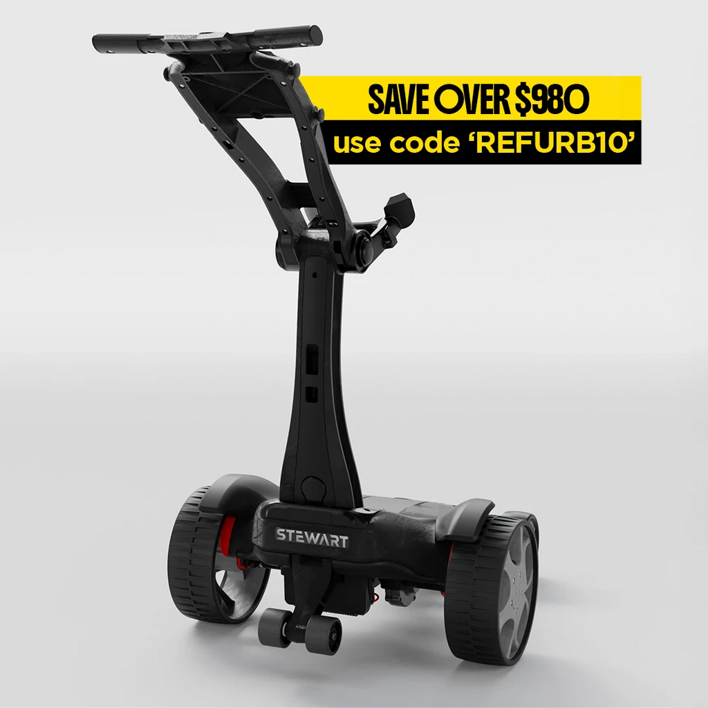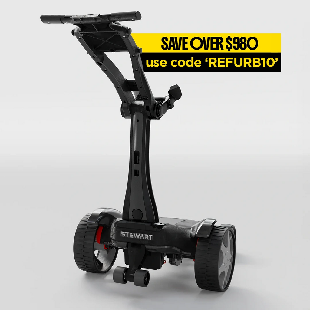 Our flagship model, the Q Follow, takes the Stewart Golf heritage of award-wining innovation and elevates it again with a next-generation compact Follow and Remote golf caddie.